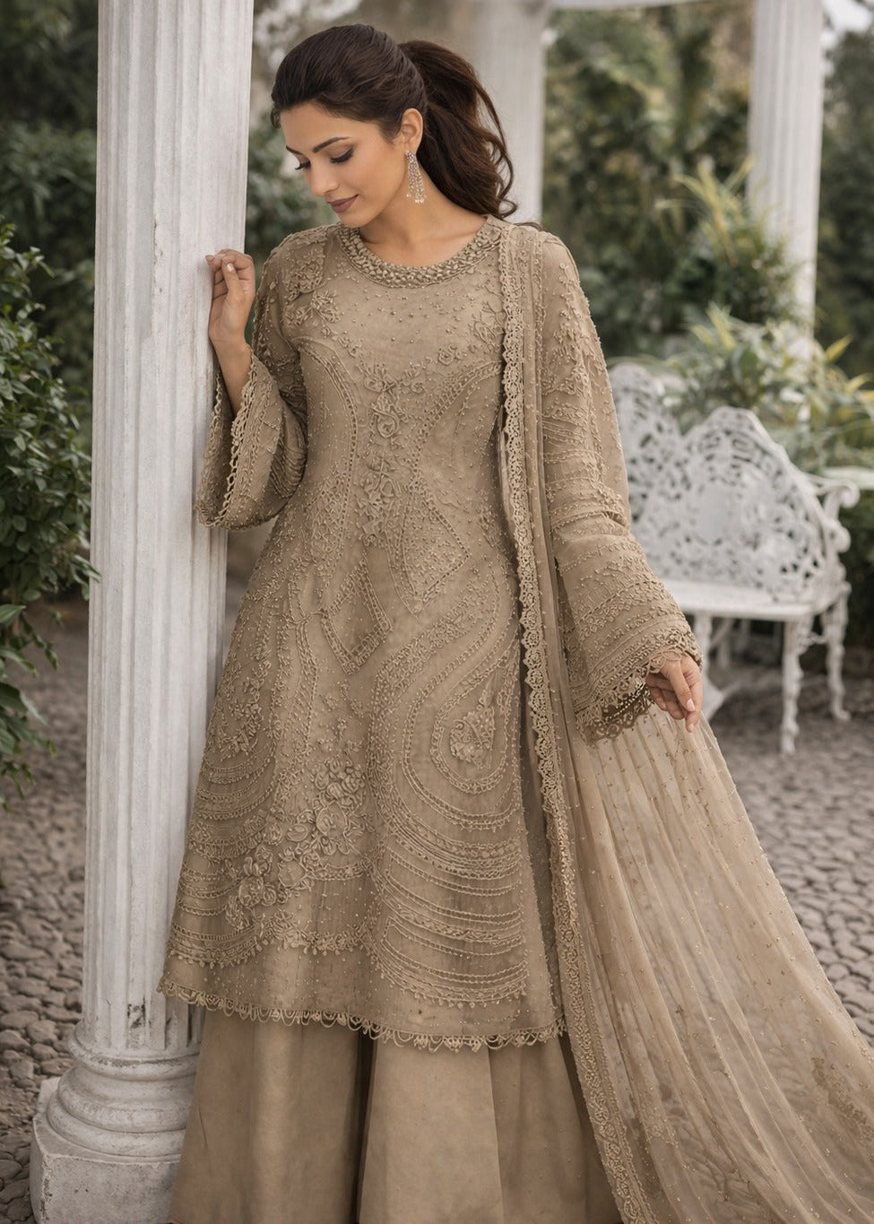 Elegant Taupe Embroidered Suit Set